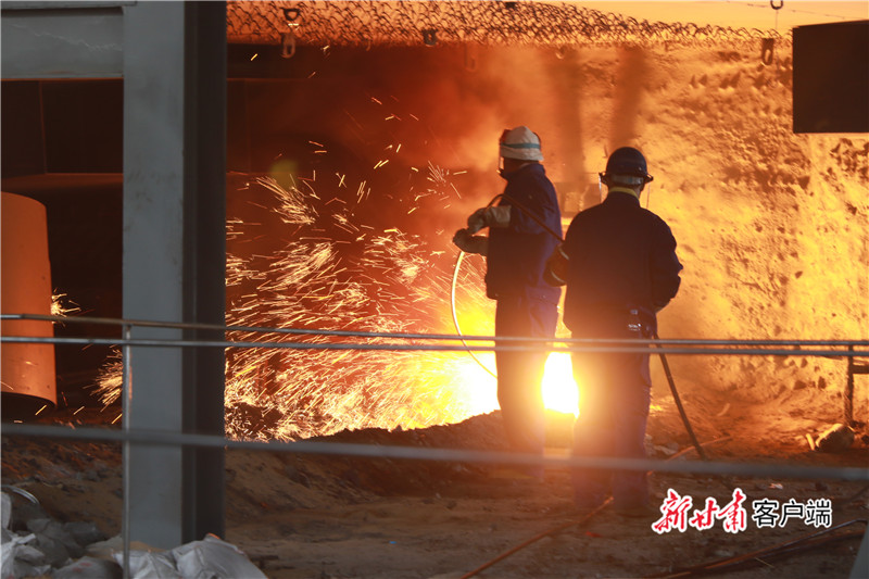 “鐵水出來啦!”職工們激動(dòng)地歡呼起來,主控室內(nèi)掌聲如潮,高爐平臺(tái)鞭炮齊鳴。噴涌而出的鐵水,像一條“火龍”沿著出鐵溝蜿蜒流動(dòng),最終匯入爐臺(tái)下的鐵水罐中。