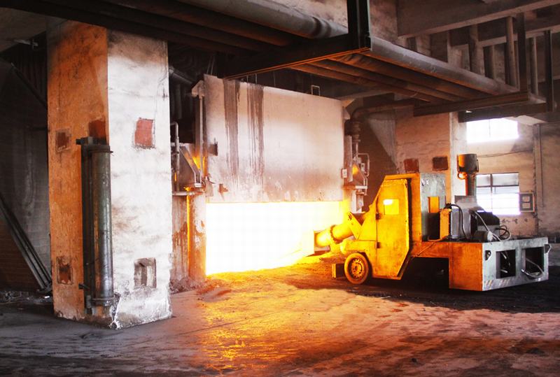 搗爐機(jī)正在對(duì)錳硅礦熱爐內(nèi)的料面進(jìn)行維護(hù)作業(yè)